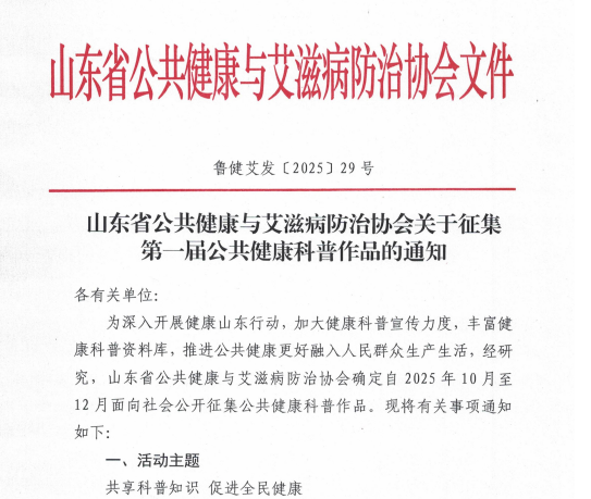 山东省公共健康与艾滋病防治协会关于征集第一届公共健康科普作品的通知