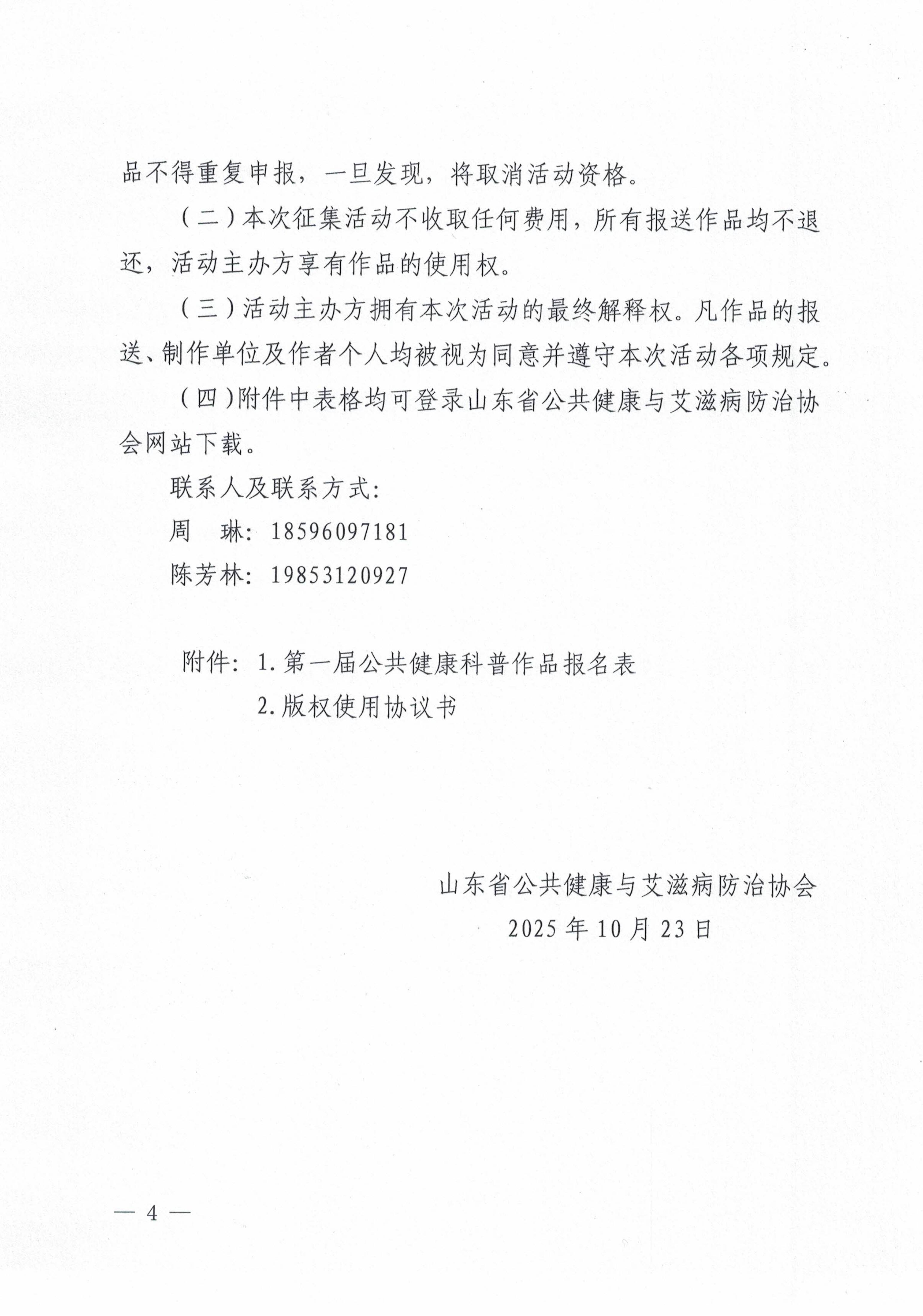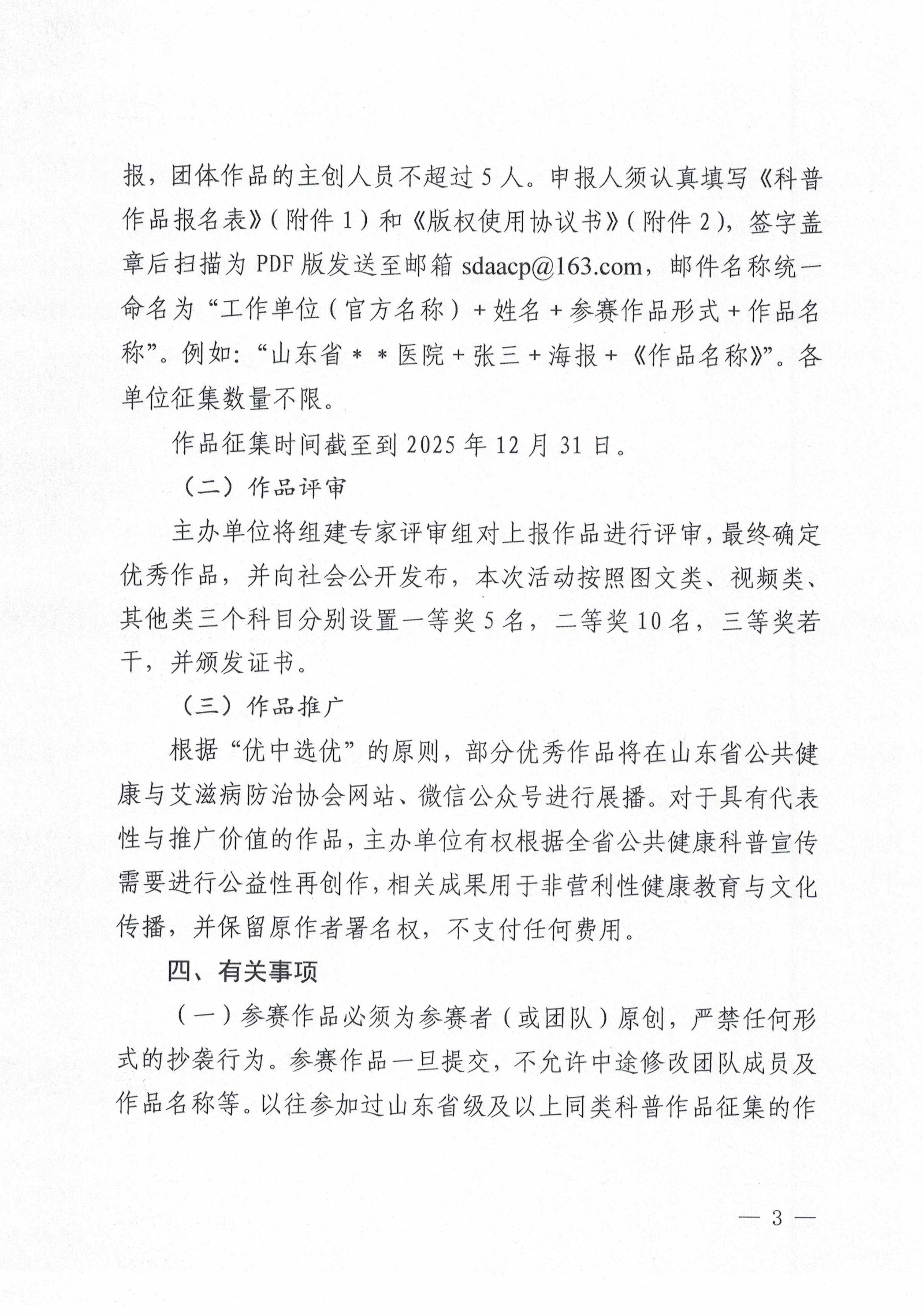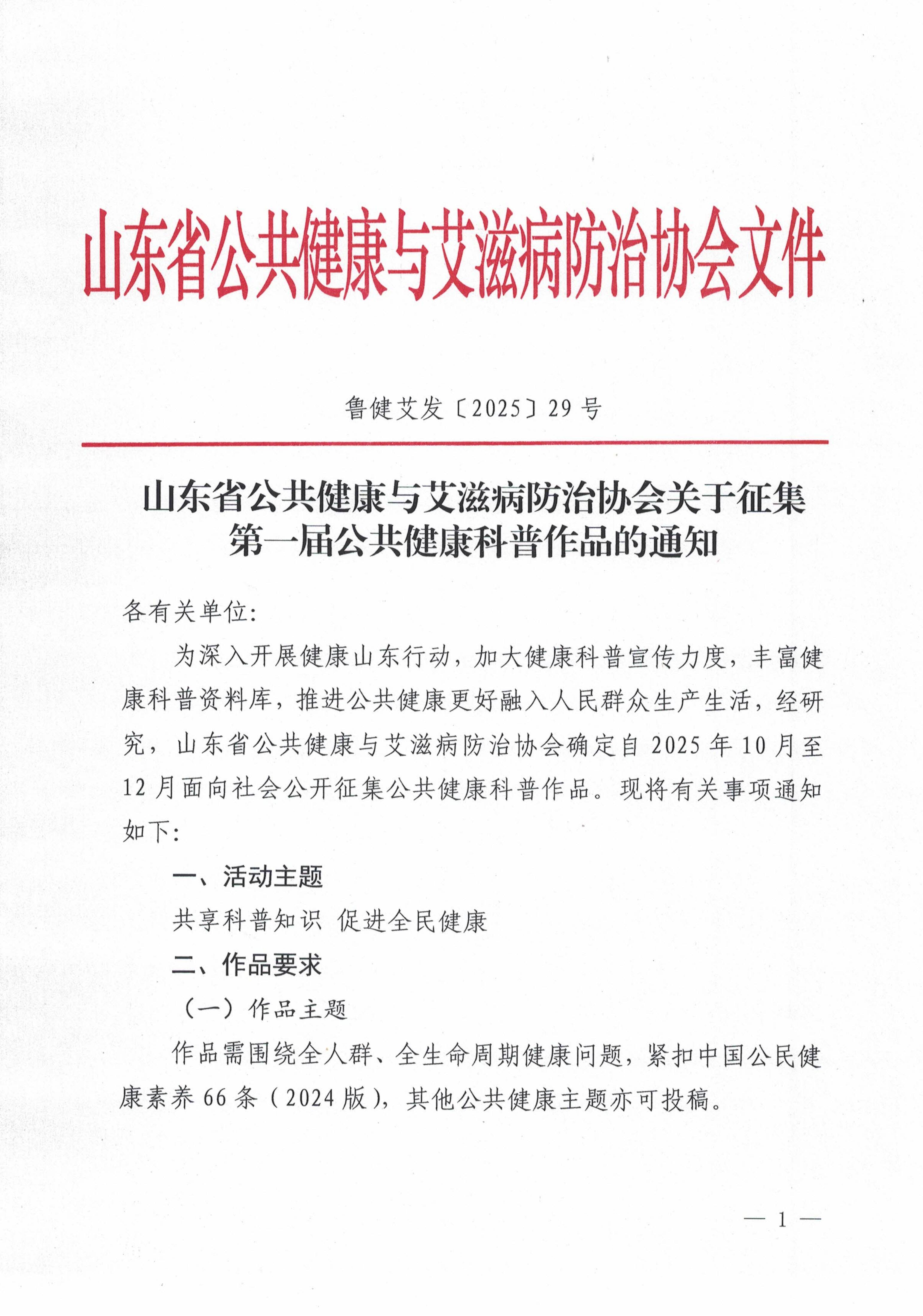 山东省公共健康与艾滋病防治协会关于征集第一届公共健康科普作品的通知