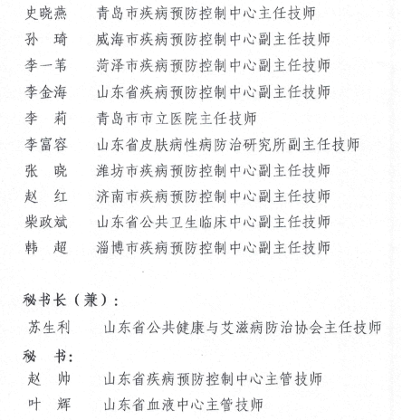山东省公共健康与艾滋病防治协会艾滋病检测专家组第二届情况介绍