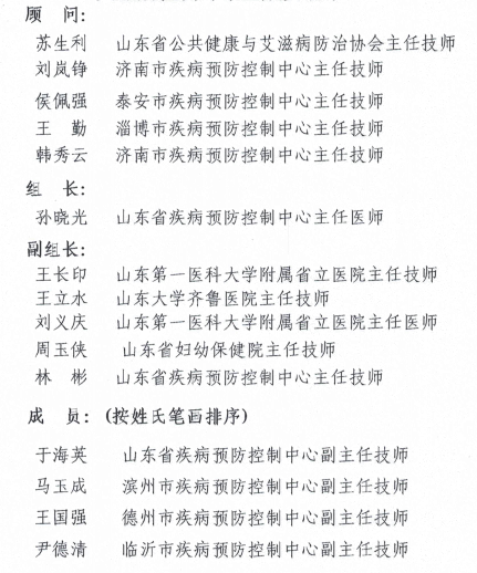 山东省公共健康与艾滋病防治协会艾滋病检测专家组第一届情况介绍
